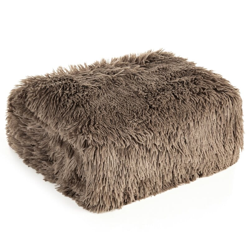 Ciepły i miły w dotyku koc o strukturze futra kolor: ciemnobeżowy, Gramatura: 240 GSM GSM, Skład: 100%poliester