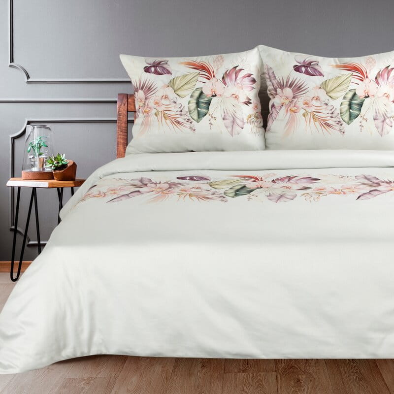 Komplet pościeli z satyny bawełnianej z nadrukiem kolor: biały, Gramatura: 125 GSM, Skład: satyna 100% bawełna