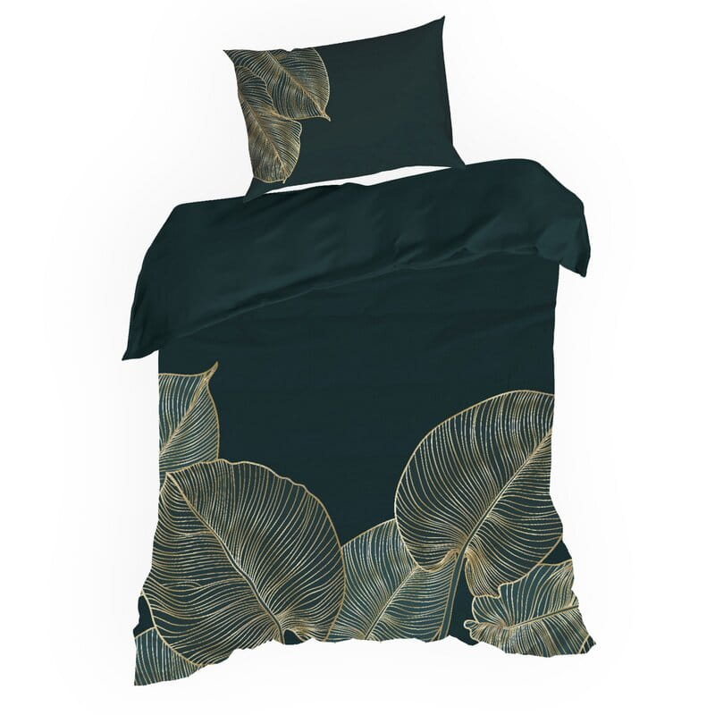 Pościel z makosatyny bawełnianej z roślinnym nadrukiem szerokość: 180 cm, długość: 200 cm, kolor: ciemnozielony, Gramatura: 125 GSM, Skład: 100% bawełna