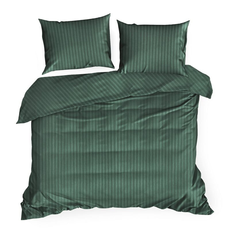 Komplet pościeli jednokolorowej w prążki z adamaszku satynowego szerokość: 220 cm, długość: 200 cm, kolor: ciemnozielony, Gramatura: 125 GSM, Skład: satyna, 100% bawełna