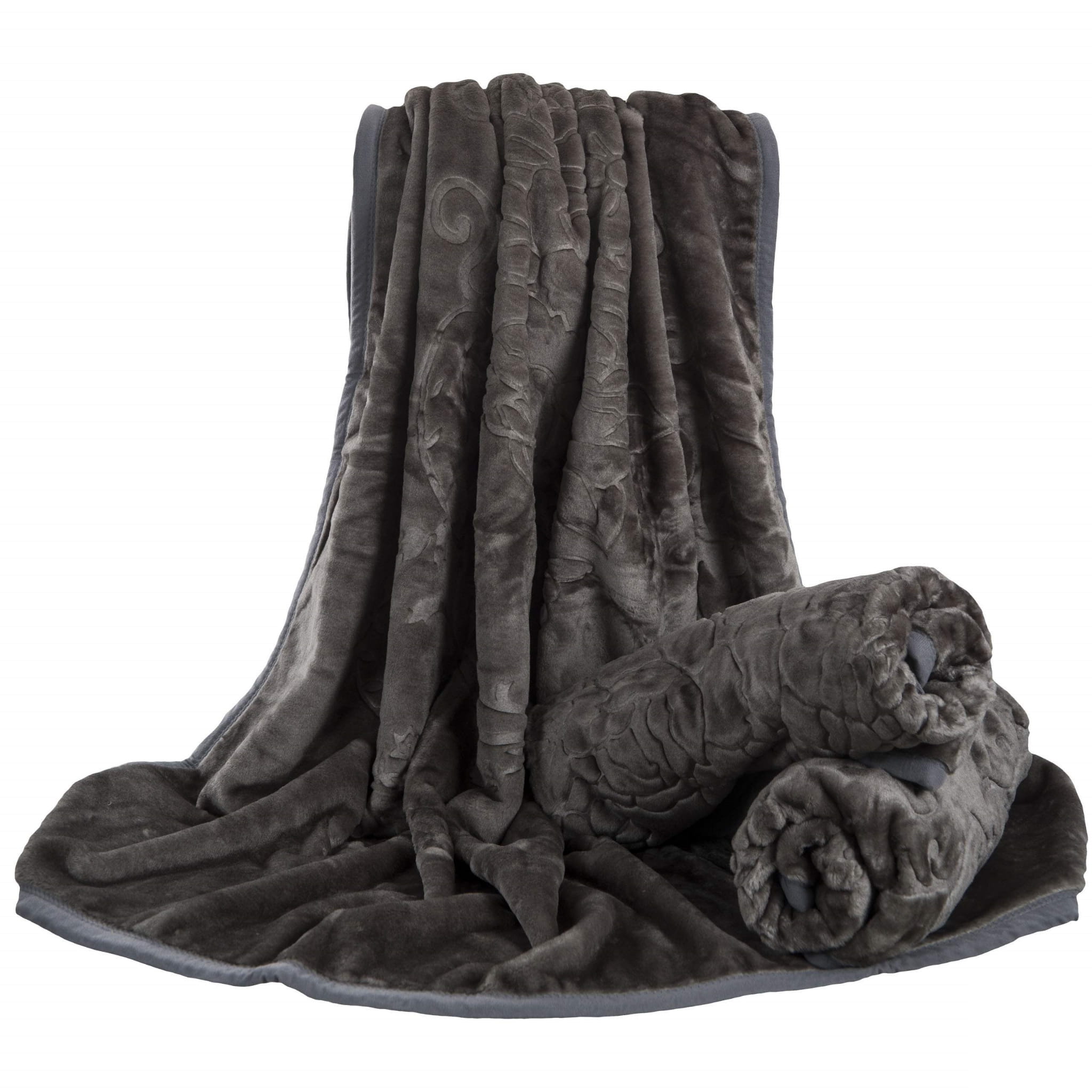 Koc akrylowy 75x160 Elway tłoczony ciemny szary na fotel