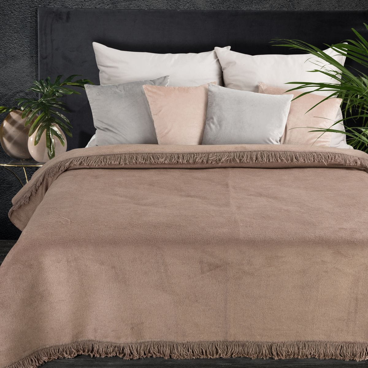 Koc akrylowo bawełniany jednokolorowy z frędzlami
