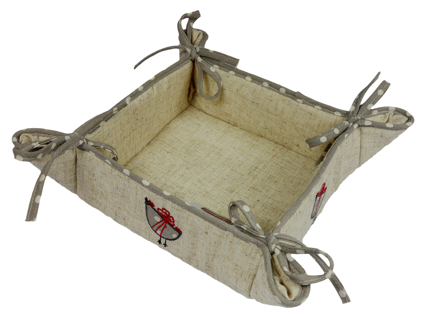 Wielkanocny koszyczek na pieczywo z haftowanymi kurkami