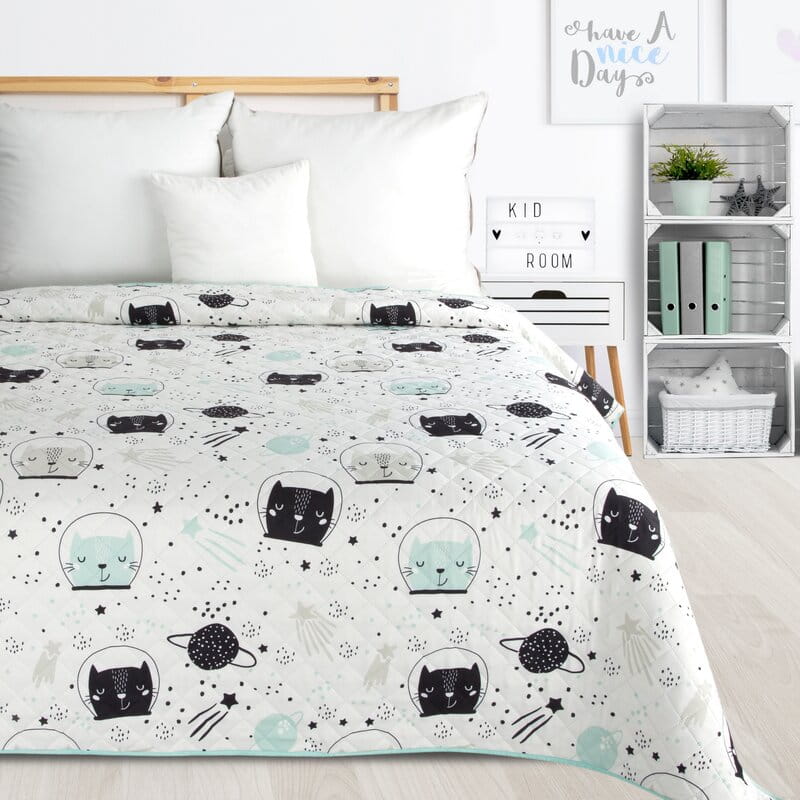 Drukowana narzuta z mikrofibry ze wzorem dziecięcym/młodzieżowym kolor: biały, Gramatura: 70+120+70 GSM, Skład: 100%poliester