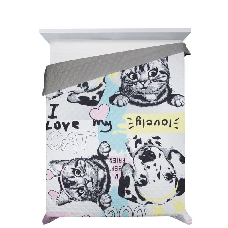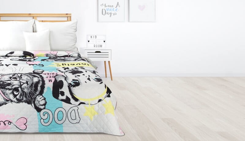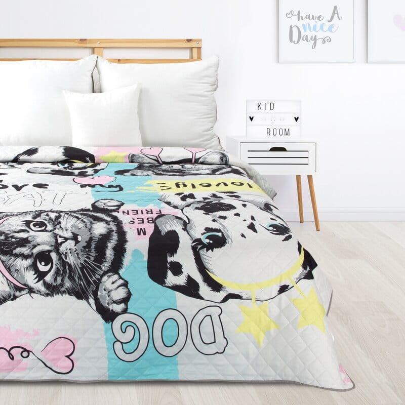Drukowana narzuta z mikrofibry ze wzorem dziecięcym/młodzieżowym kolor: biały, Gramatura: 70+120+70 GSM, Skład: 100%poliester