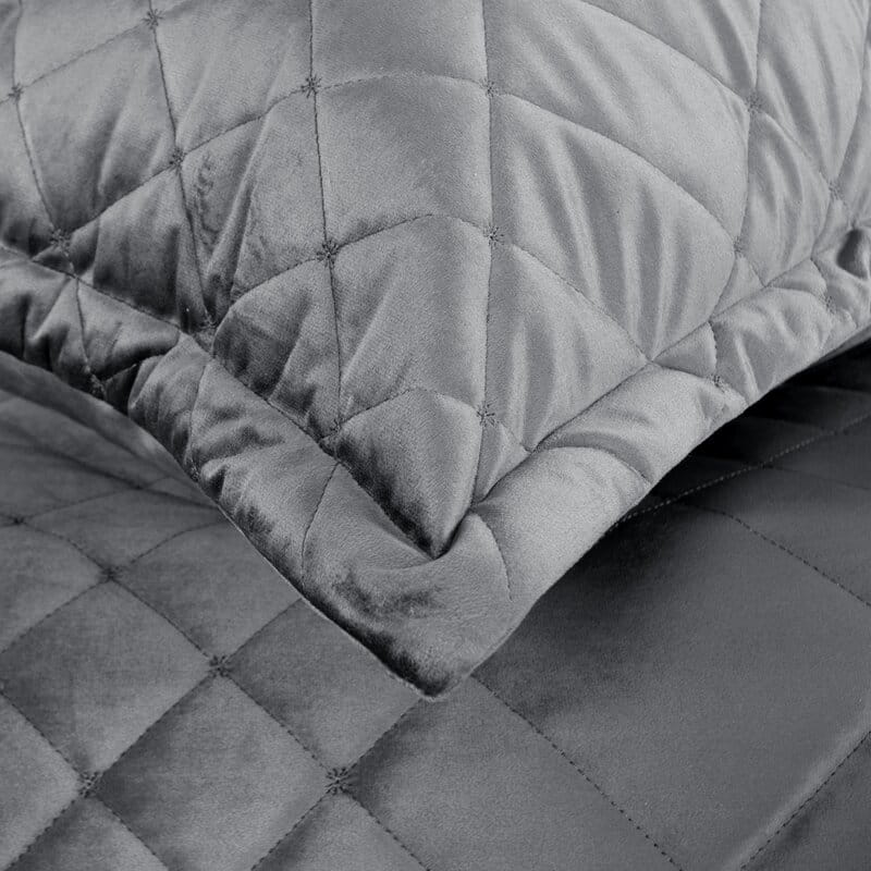 Welwetowa narzuta z przeszyciami szerokość: 170 cm, długość: 210 cm, kolor: stalowy, Gramatura: 250 GSM, Skład: 100% poliester