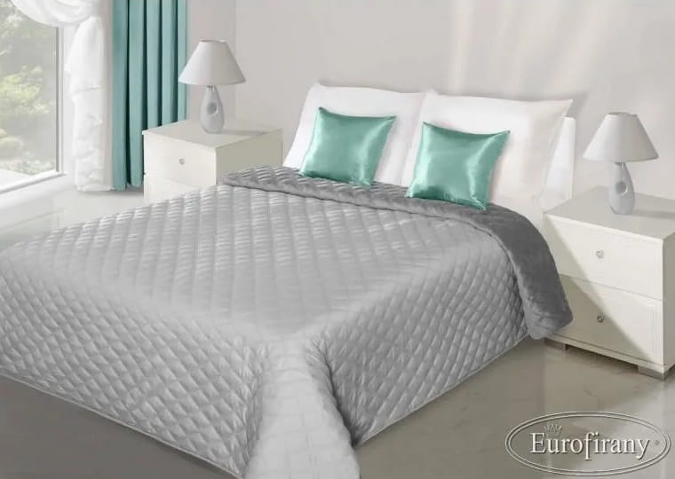 Jedna strona z miękkiego w dotyku weluru, druga z gładkiej tkaniny, pikowana w drobne romby. Prosta kolorystyka i forma sprawiają, że narzuta pasuje do wystroju wnętrz urządzonych w różnych stylach. Narzuta wykonana metodą pikowania tkanin bez użycia nici (termozgrzewania) co nadaje materiałowi bardzo dużą wytrzymałość.
