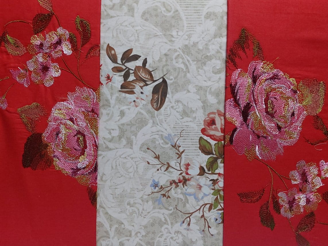 Pościel haftowana czerwona kwiaty 200x220