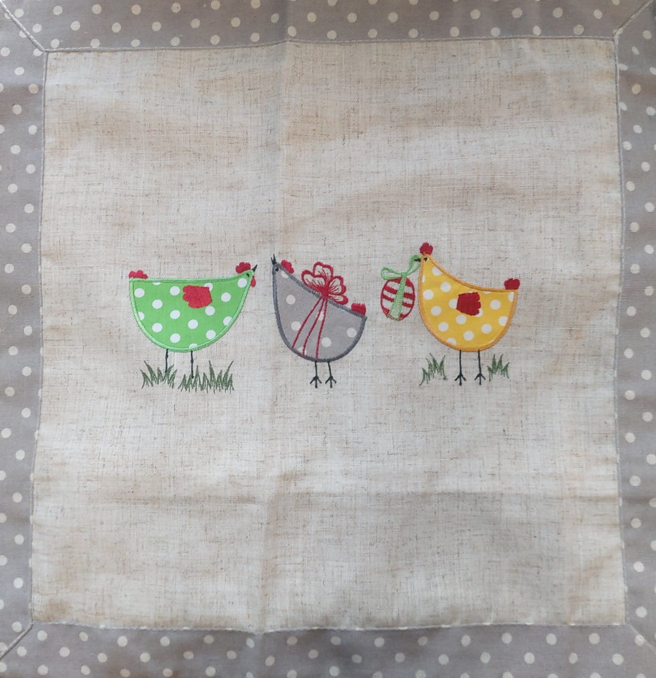 Wielkanocna poszewka z haftowanymi kurkami z dodatkiem lnu