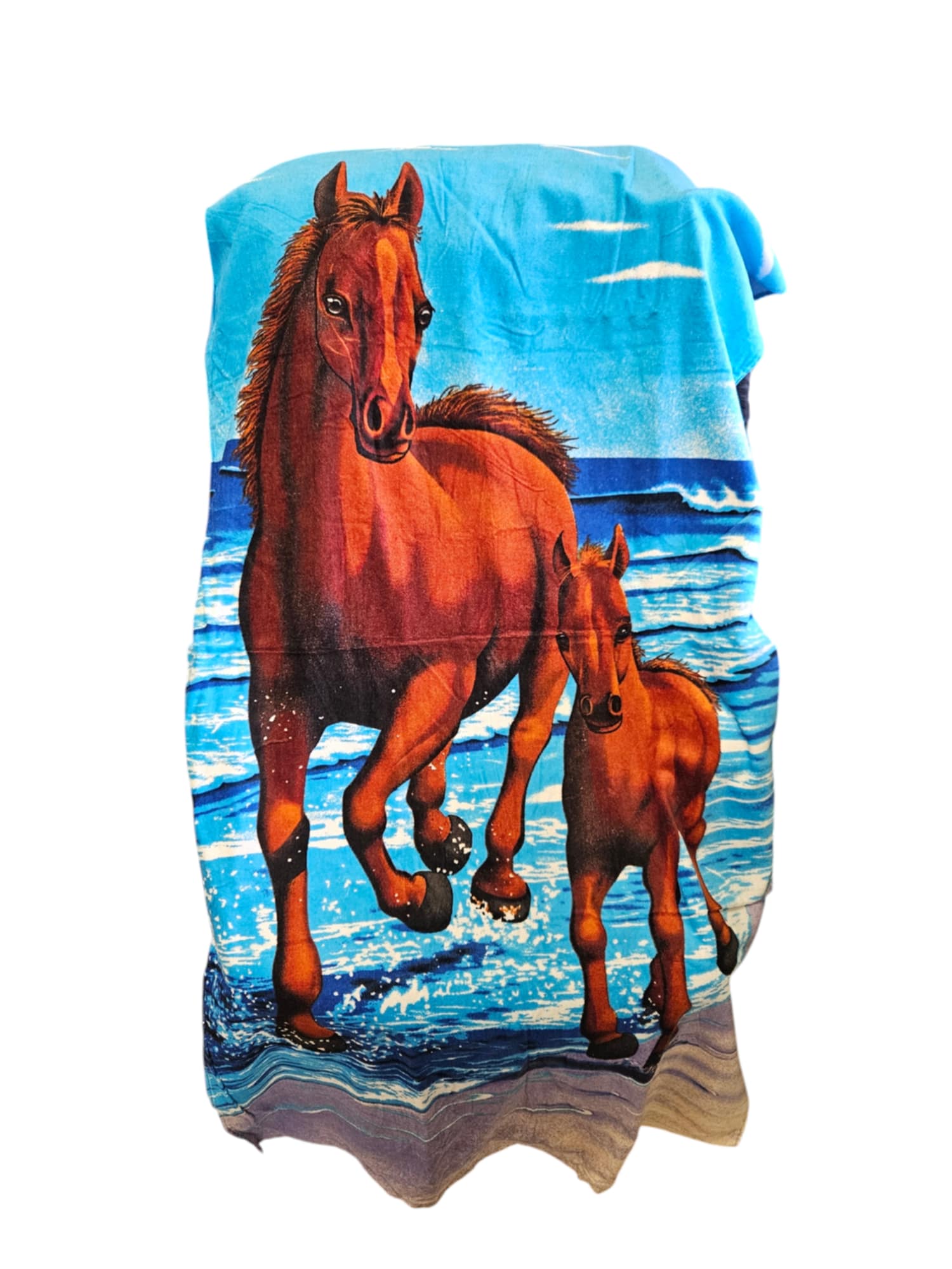 Ręcznik dziecięcy plażowy 70x140 Konie Koń i źrebak