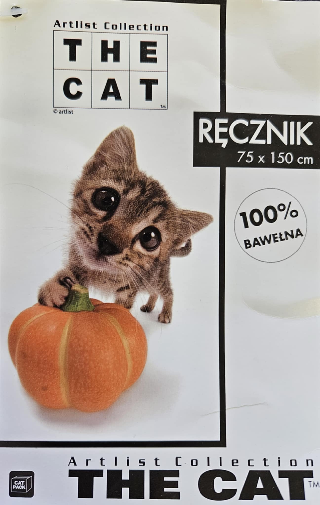 Ręcznik dziecięcy plażowy 75x150 The Cat kot z dynią