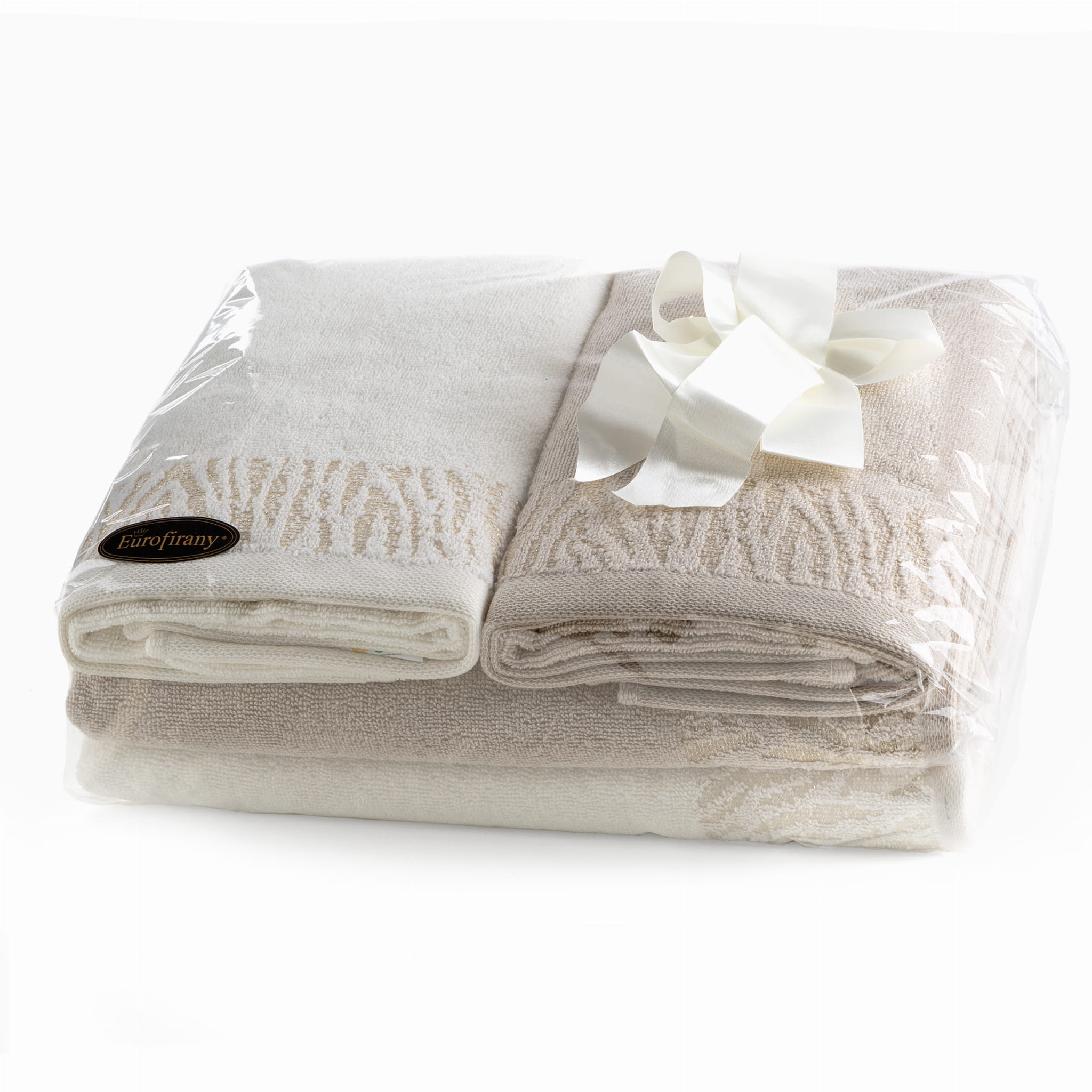 Ręczniki komplet 4 części EuroFirany zestaw ręczników MARGO BIAŁY+BEŻ