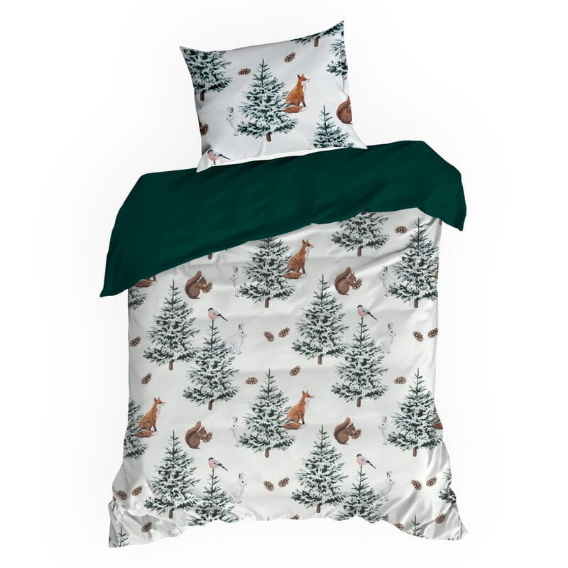 Komplet pościeli z mikrowłókna z nadrukiem świątecznym szerokość: 160 cm, długość: 200 cm, kolor: biały, Gramatura: 75 GSM, Skład: 100% poliester