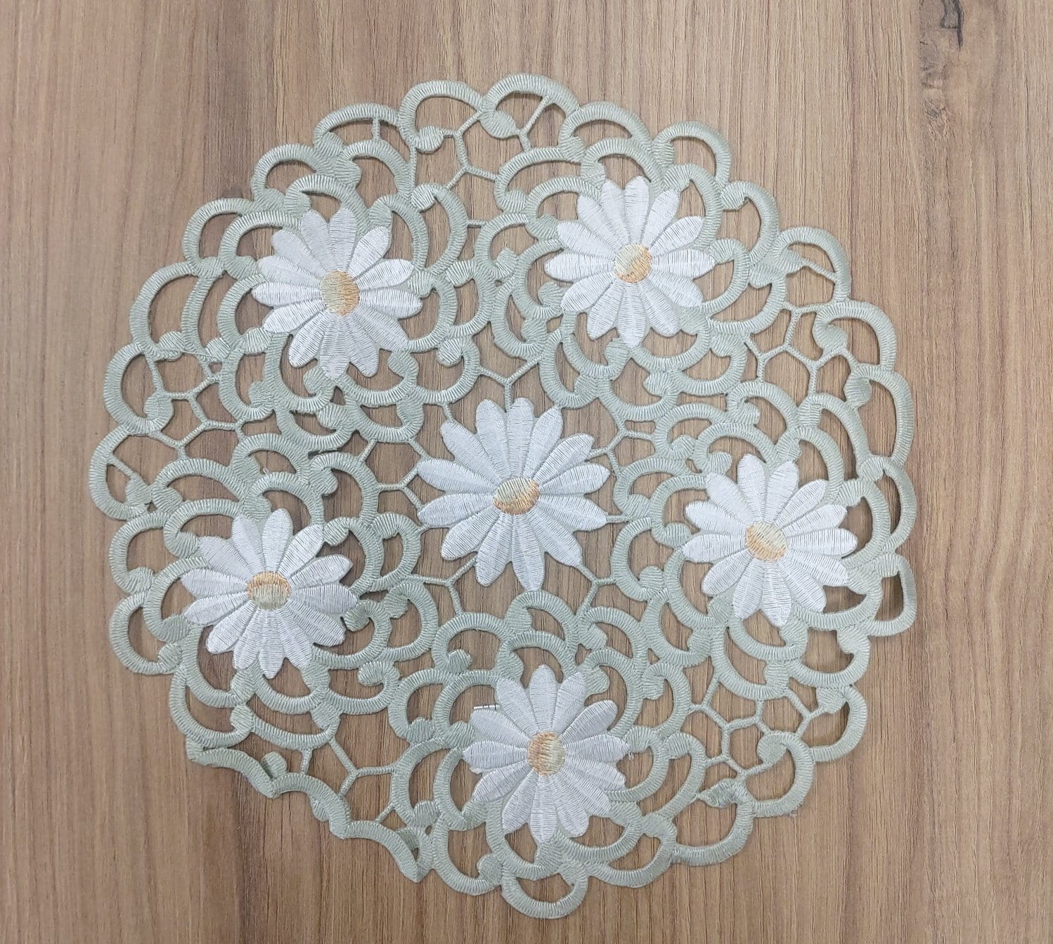 Serwetka gipiurowa haftowana w stokrotki zielony 30cm