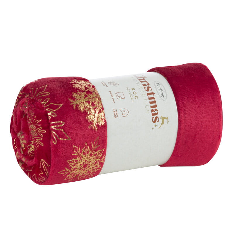 Świąteczny koc 150x200 Boże Narodzenie Joy 1 czerwony