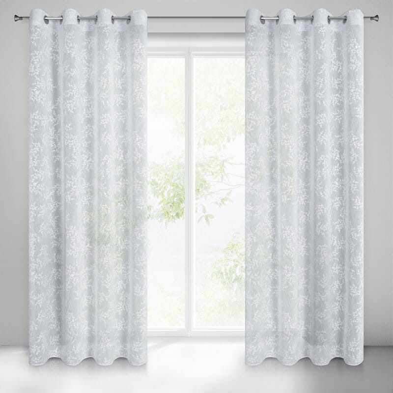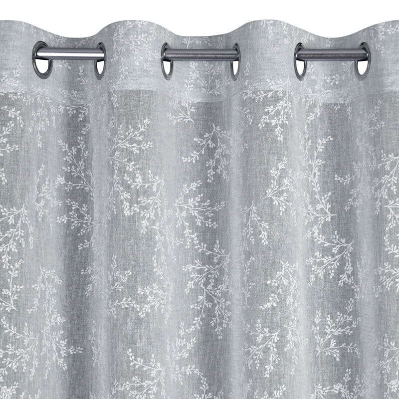 Klasyczna zasłona z tkaniny o strukturze płótna zdobiona pastelowym nadrukiem kwiatów ogrodowych. Średni stopień zaciemnienia. Tkanina łatwa w prasowaniu. szerokość: 140 cm, długość: 250 cm, kolor: szary, Gramatura: 130 GSM, Skład: 100% poliester