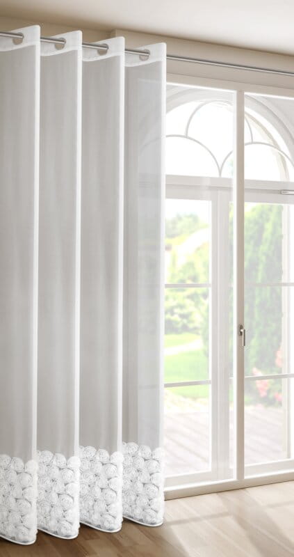 Firana gotowa z siatki z 6 pasami róż szerokość: 140 cm, długość: 250 cm, kolor: biały, Gramatura: 50 GSM, Skład: 100% poliester