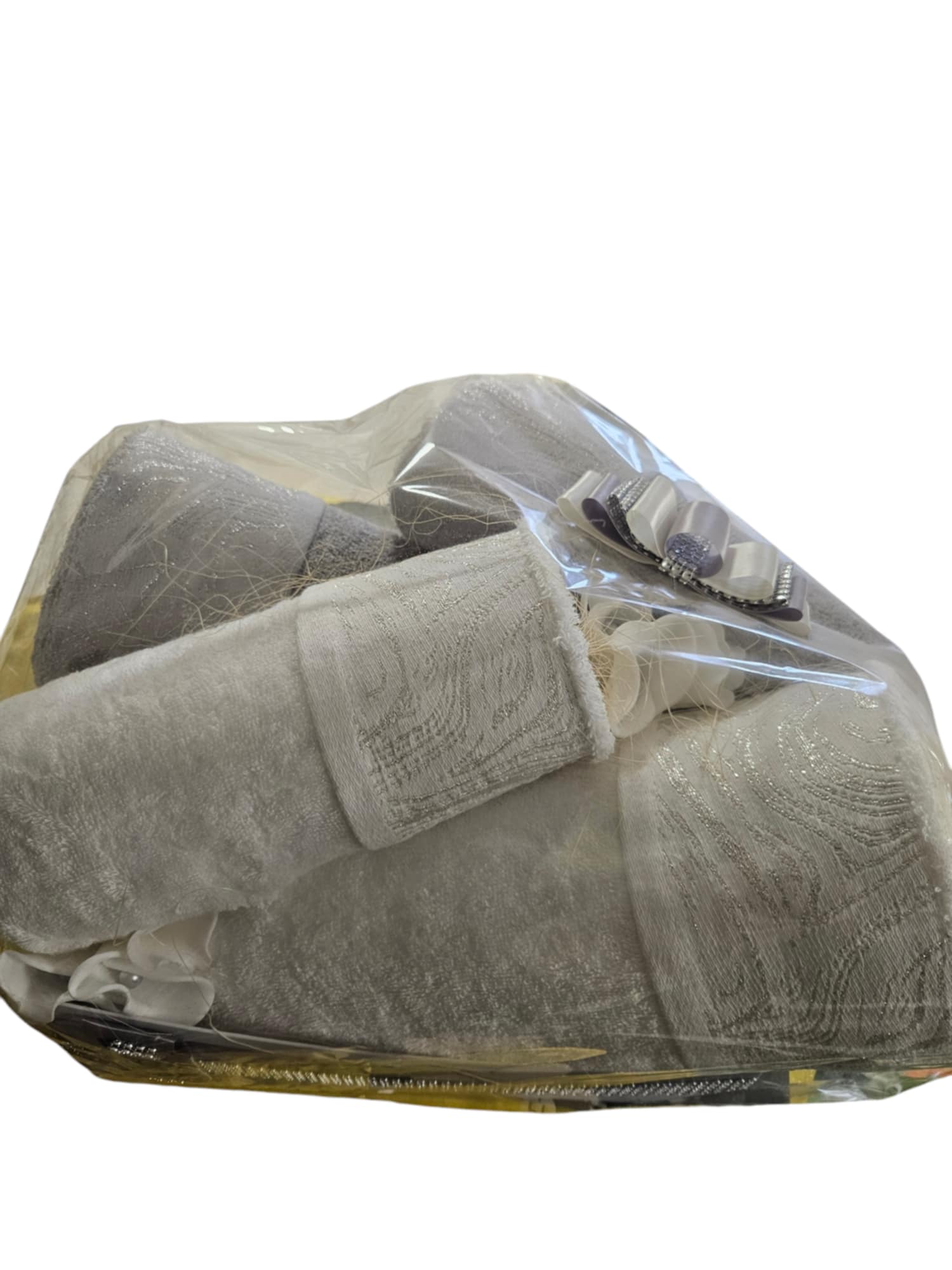 Gotowy do wręczenia zestaw prezentowy składający się z ręczników.